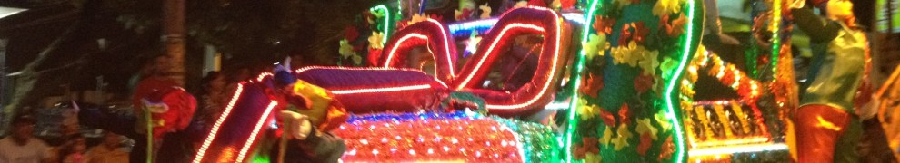 Gio and I are going – not to everything, but to big chunks of it – and I’m planning to take you with us. But if you’re going to go, you have to prepare, Barranquilla-style. For those of us who live here, this means attending at least one pre-Carnaval event. Gio and I took it easy – we went to a parade that was less than a block from our house. (For better or worse – we’ll soon find out which – we live right next to a primary area for official celebrations.) I compiled snippets of the parade into one video that you can watch in only three minutes. As you’ll see, despite the fact that this parade was not even on the list of official pre-Carnaval events, it had plenty of life and action.