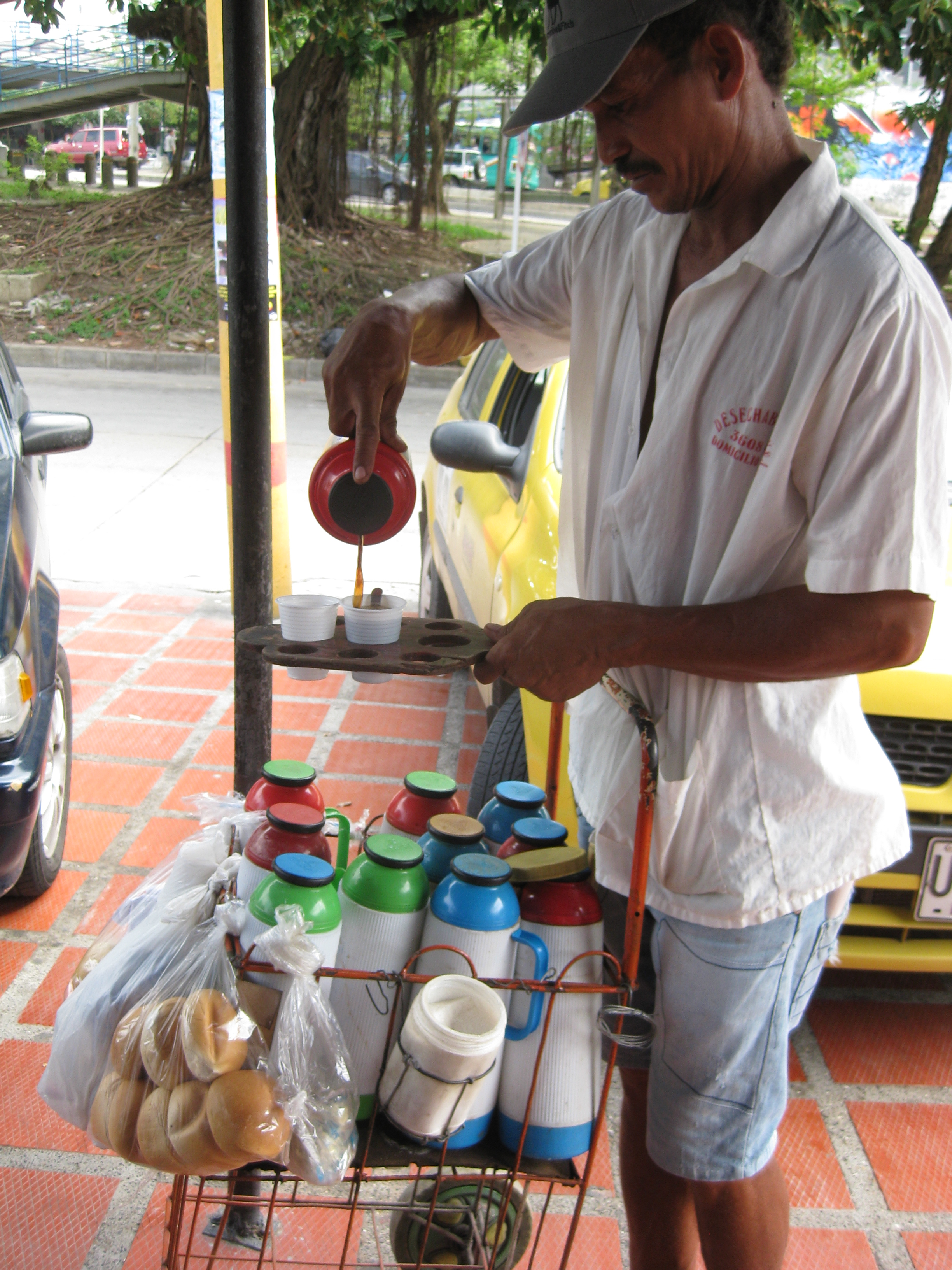 The CNN author refers to “leagues of women” walking “Colombian cities” to serve coffee, but he must be referring to Bogotá or Medellín or Cali, because that’s definitely not the case in Barranquilla. I cannot recall ever seeing a woman serve coffee on the street in Barranquilla. In this city, it’s the men who are on coffee patrol.