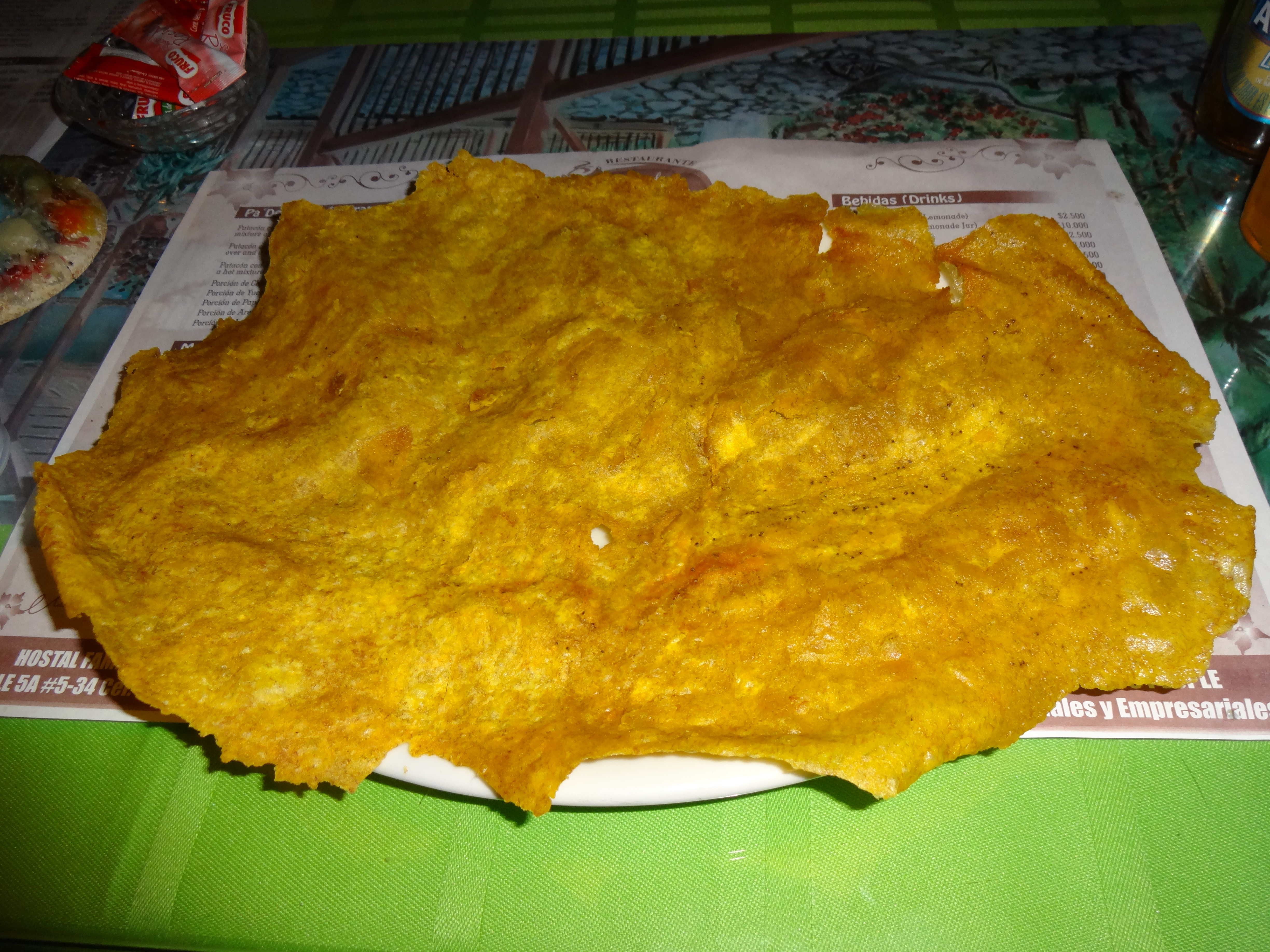 One single, whole pizza-sized fried plantain (patacón).