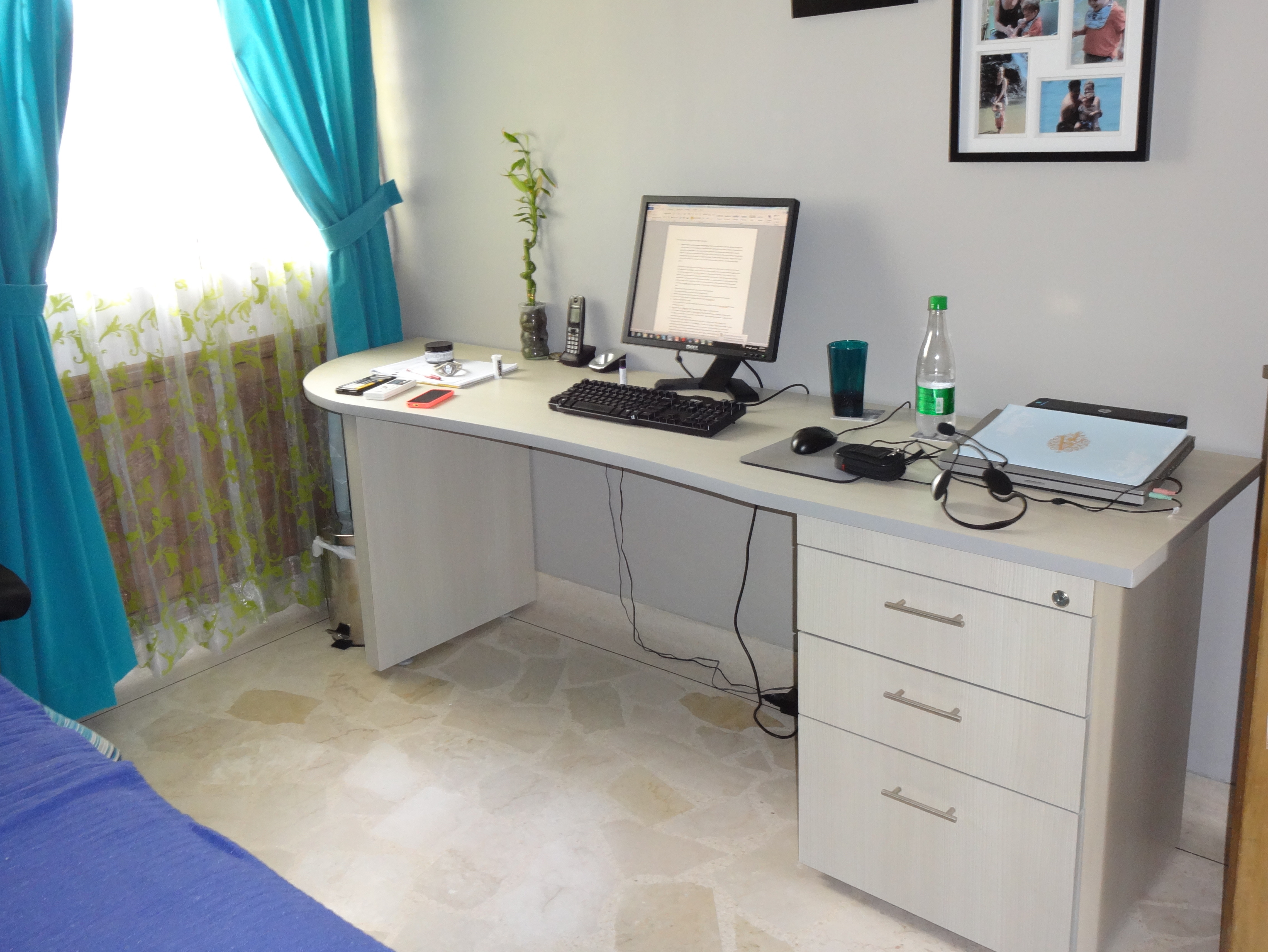 Gio’s custom-made desk. A good fit… for the space and our budget!