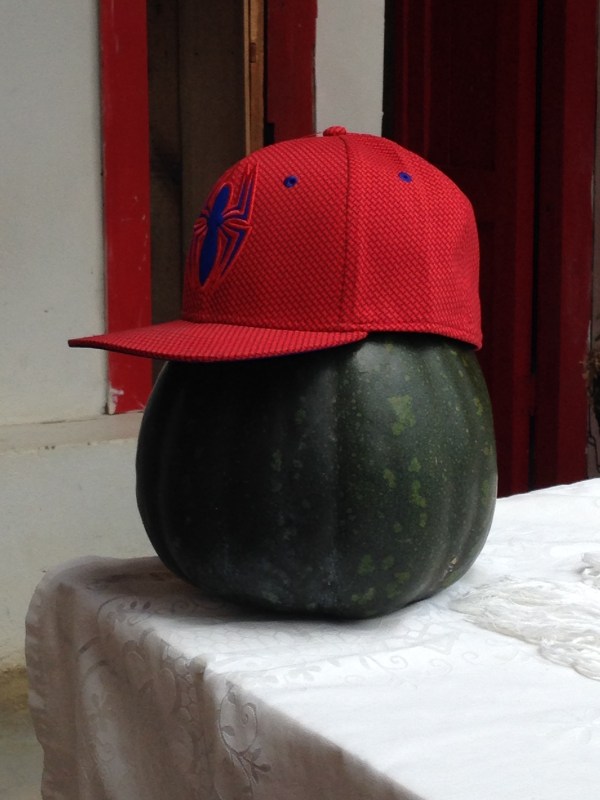 Because all squash (an auyama in Spanish, or as I prefer to refer to them – pijama) should have a Spider-Man ball cap.